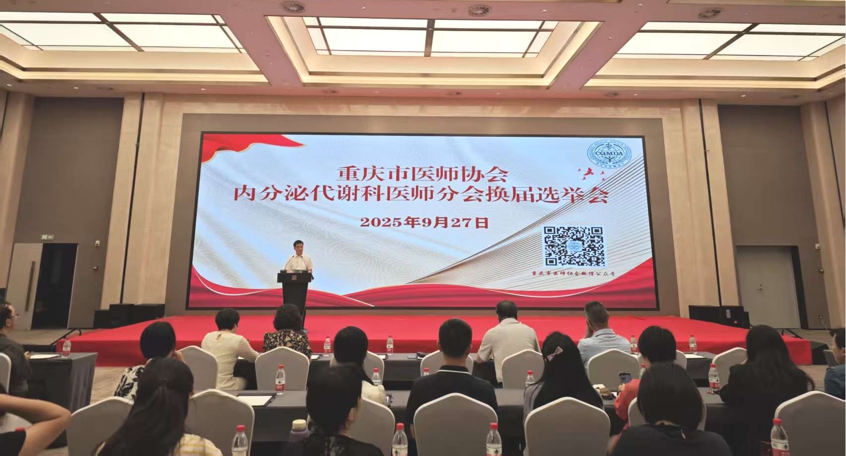 2025年9月27日下午,重庆市医师协会内分泌代谢科医师分会换届选举会在重庆红楼宾馆隆重举行。会议由重庆市医师协会副会长兼秘书长范宏连主持。内分泌代谢科医师分会第三届委员会全体委员共同见证了本次换届选举的重要时刻。